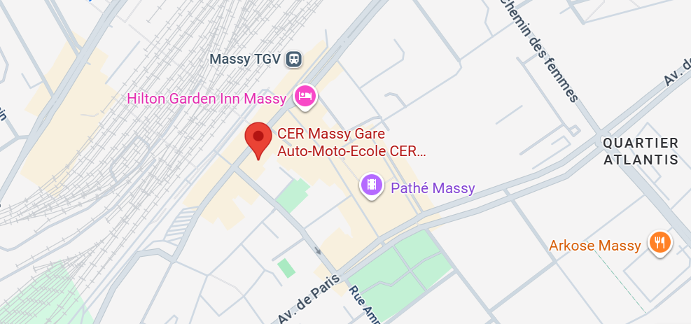 Notre auto-école CER Massy Gare bénéficie d’un emplacement privilégié au cœur d’un important pôle de transport qui rend l’agence particulièrement bien desservie et facile d’accès. Le CER Massy Gare à proximité immédiate de la gare Massy Palaiseau (RER B & C). Nous disposons d’une grande salle de code qui vous permettra d’être dans les meilleures conditions d’apprentissages afin d’optimiser vos chances d’obtenir votre diplôme. Notre équipe vous accueille le lundi de 15h à 19h et du mardi au vendredi de 10h à 12h ainsi que le samedi de 10h à 14h.
